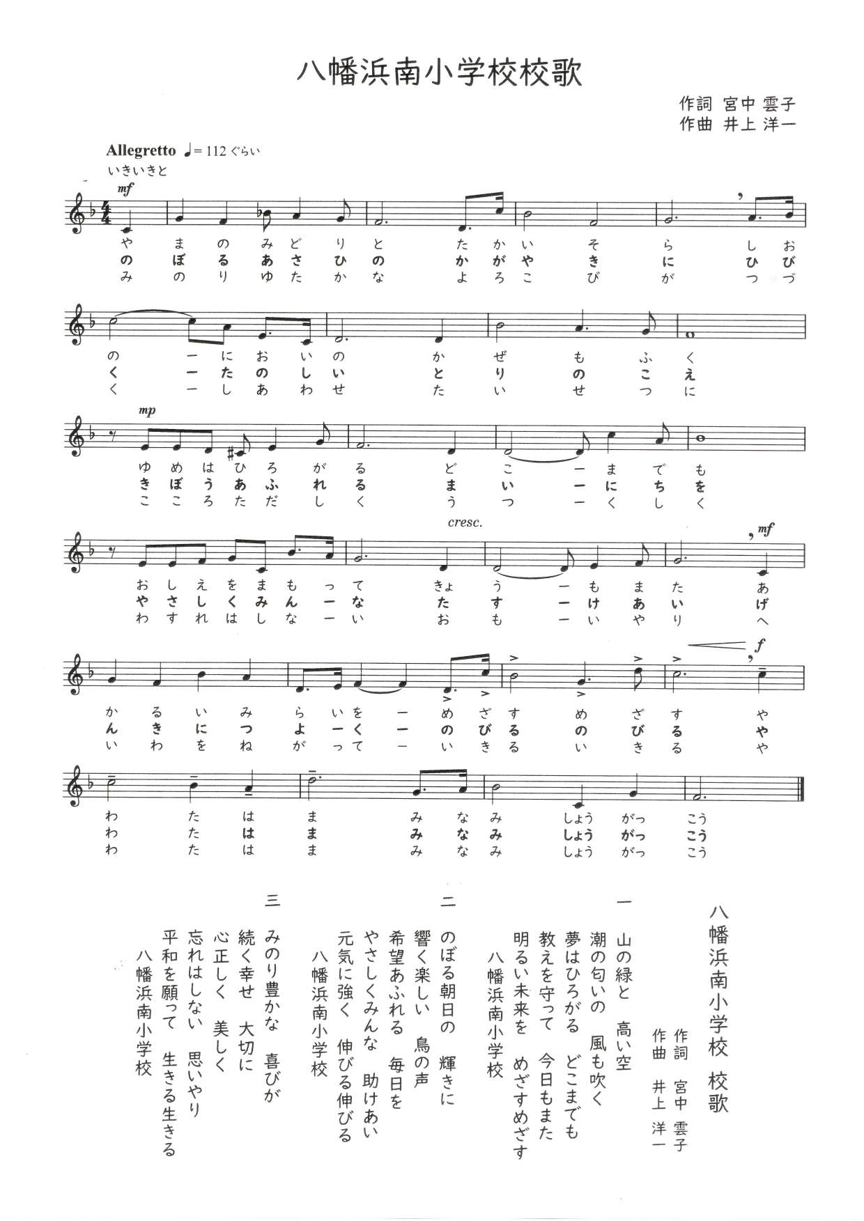 統廃合準備情報コーナーに八幡浜南小校歌(楽譜・歌詞・音源)掲載中🎵